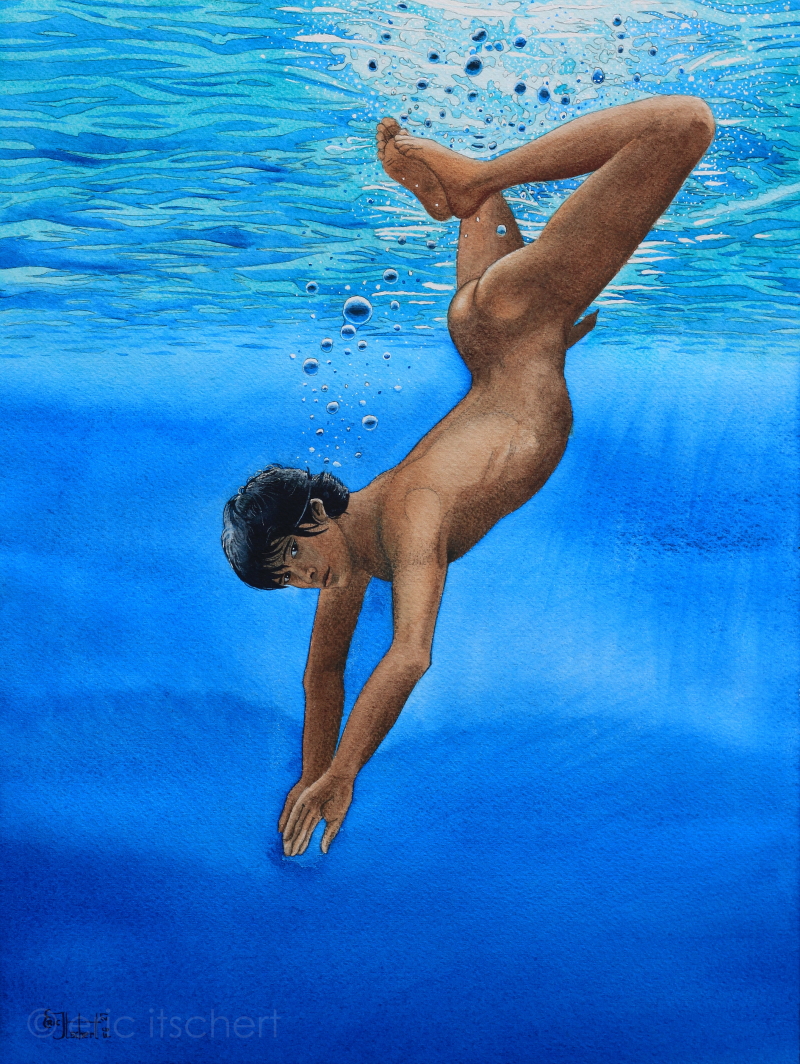 224 Jeune Homme Nageant Vers Les Profondeurs
