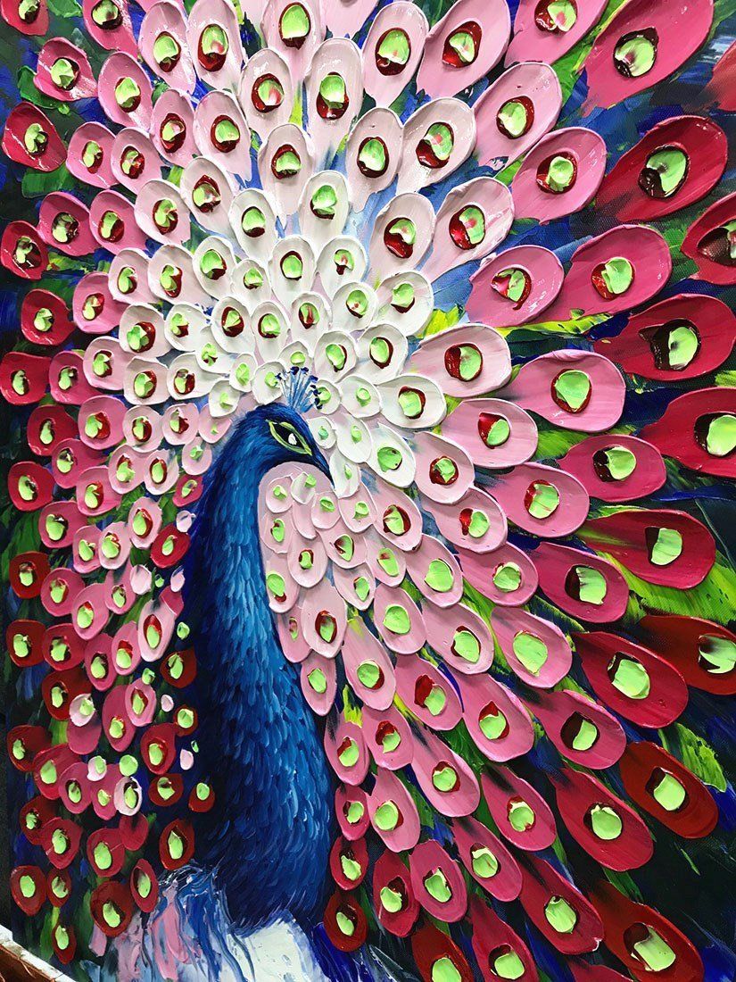 Acheter Peinture Abstraite Moderne Paon Rouge En Plume Peinture A La Main A Lhuile 3d Peinte A La Main Sur Toile Art Abstrait De 31 45 Du Paintingart2017 Dhgate Com